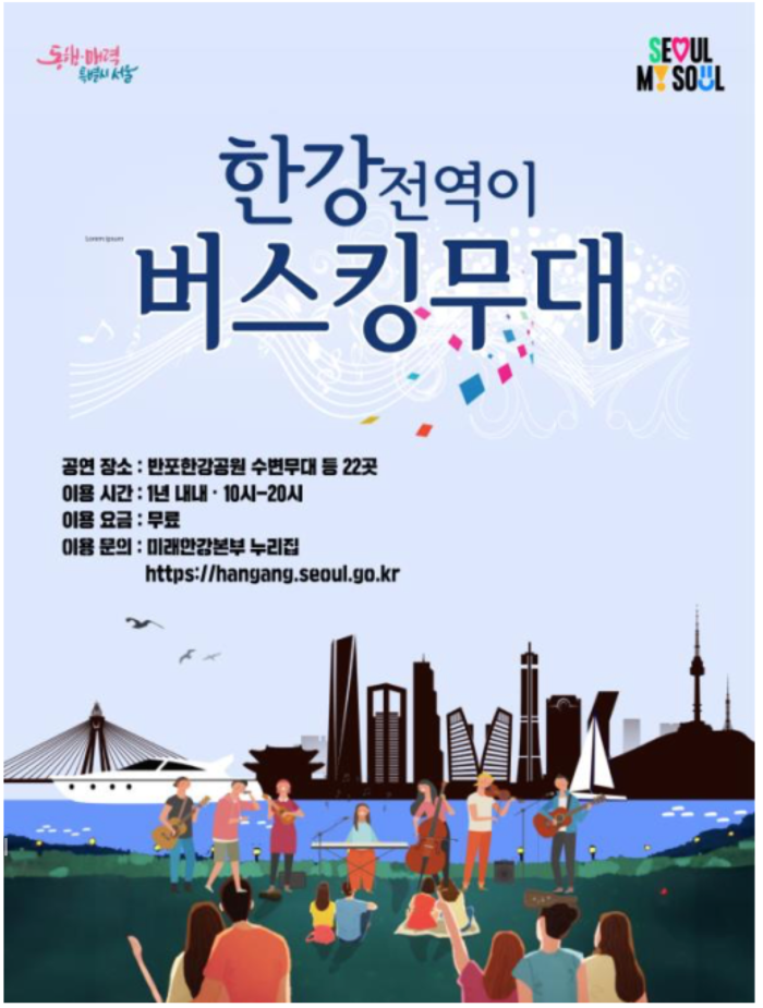 그동안 한강공원에서 거리공연이 개별적으로 이뤄졌다면, 이제는 체계적으로 거리공연을 관리해 한강을 버스킹 성지로 만들고 일상에서 문화예술의 향기가 넘치도록 하겠다는 목표다.