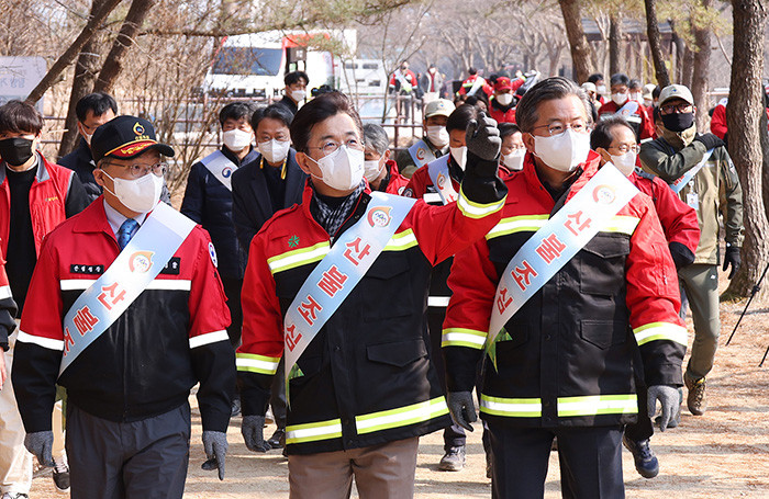 허 시장과 함께 최병암 산림청장 등 관계 기관장 40여 명은 이날 캠페인에서 산행을 하는 시민들에게 홍보물을 나눠주며 산불예방에 동참할 것을 호소했다.