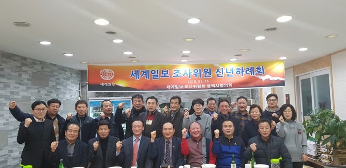 [세계로컬신문 박래영 조사위원] 세계일보 조사위원 평택시협의회(회장 박래영)가 지난달 16일 평택 한 식당에서 신년하례회를 갖고 기념사진 촬영을 하고 있다.
