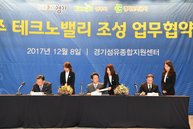 이성호 양주시장은 지난 8일 경기섬유종합지원센터에서 남경필 경기도지사, 김용학 경기도시공사 사장과 ‘양주(경기북부) 테크노밸리 조성’ 업무협약을 체결했다.