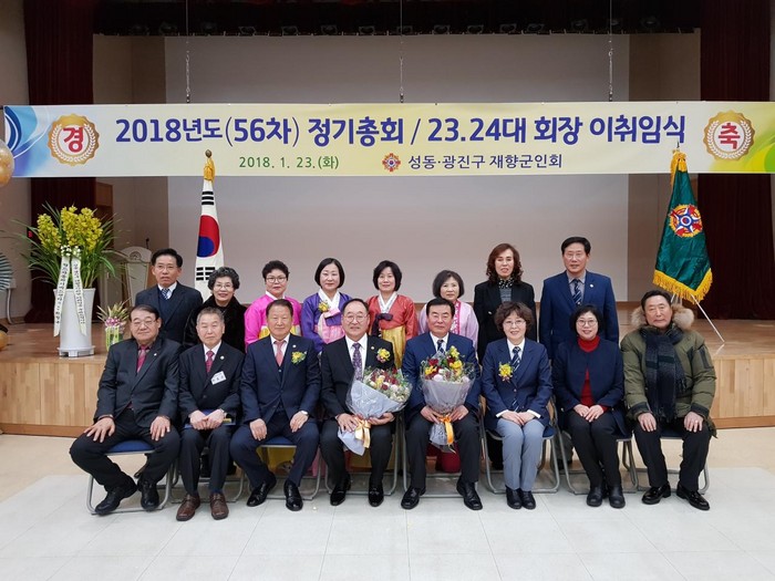 [세계로컬신문 정찬희 조사위원] 지난달 23일 개최된 성동·광진구 재향군인회 제23·24대 회장 이취임식에서 회장으로 취임한 정찬희 회장(세계일보 조사위원, 앞줄 왼쪽에서 네 번째)과 기념사진 촬영을 하고 있다.