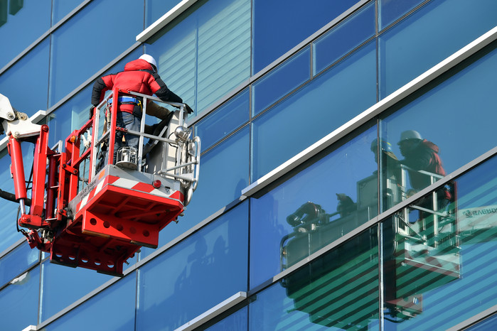 | ▲ 수원시 구조전문위원회 위원들이 균열이 일어난 유리창을 점검하고 있다. (사진=수원시 제공) |