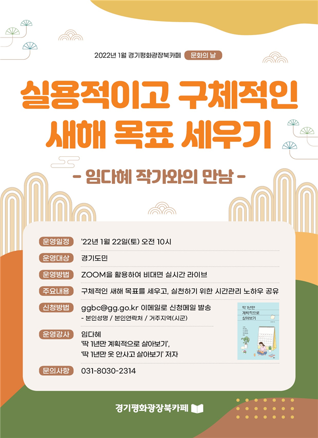 | ▲경기도 임인년 새해 맞아 경기평화광장 북카페에서 문화의 날 강좌를 진행한다.(사진=경기도 북부청) |