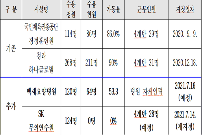 생활치료센터도 2곳 늘려 총 4곳 운영