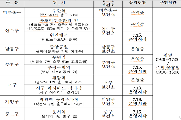 | ▲임시선별검사소 현황.(사진=인천시 제공) |