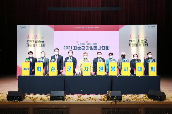 [세계로컬타임즈 강석운 기자] 화순군이 건강한 지역사회 만들기에 앞장선 자원봉사자를 응원하고 자원봉사 활성화를 위한 ‘2021 화순군 자원봉사대회’를 개최했다.