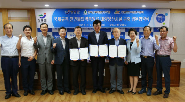 장흥군은 지난 7일 군청 상황실에서 한국신약개발연구조합, 전남천연자원연구센터와 업무협약을 맺었다고 8일 밝혔다.