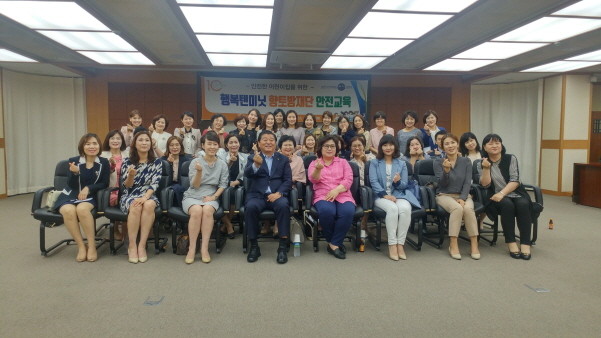 | ▲ 경기도 남양주시는 시립어린이집 원장 45여명을 대상으로 안전교육을 실시하고 기념 촬영을 하고 있다. <사진제공=남양주시> |