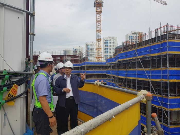 허춘 건설관리본부장은 30일 현장기동반과 함께 관저 더샵2차(4지구 4BL) 공동주택 신축현장을 점검하며 부실시공 방지를 당부했다.