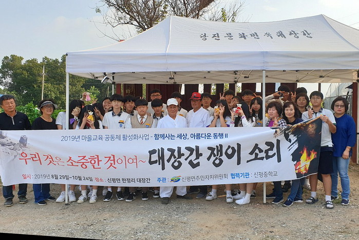 '대장간 쟁이 소리'는 회차별 30명 모두 4회 진행해 신평지역 중학생 120여 명을 대상으로 신평대장간에서 학생들이 옛날 대장간에서 수작업으로 농기계를 만드는 과정을 익혀볼 수 있도록 했다.