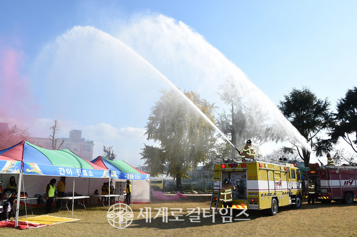 | ▲ 김제 백석초등학교에서 전재민 수용·구호 훈련을 하고 있다.(사진=김제시 제공) |
