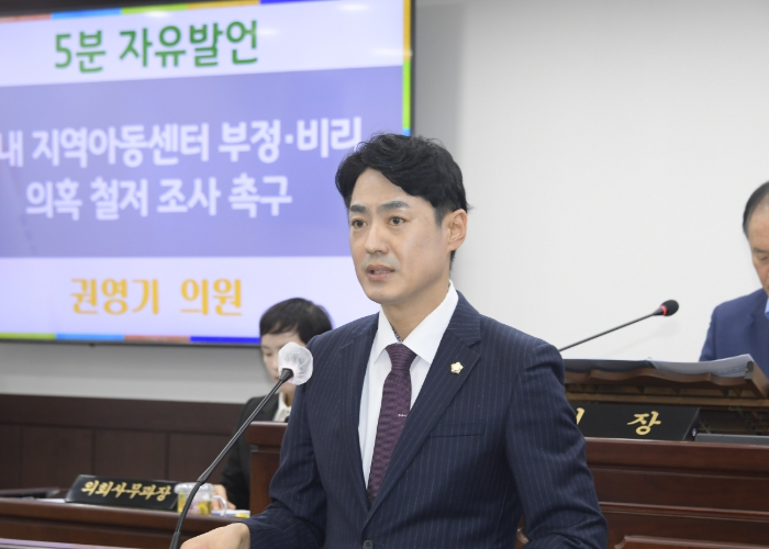 23일 열린 제341회 동두천시의회 임시회 개회식 5분 자유발언에 나선 권 의원은 제보받은 사진 자료를 증거로 제시하며, 해당 지역아동센터의 내부 비리와 부조리를 고발했다.