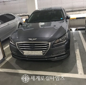 | ▲골프연습장 주차장에 주차 중인 D신협 법인차량. (사진=최원만 기자) |