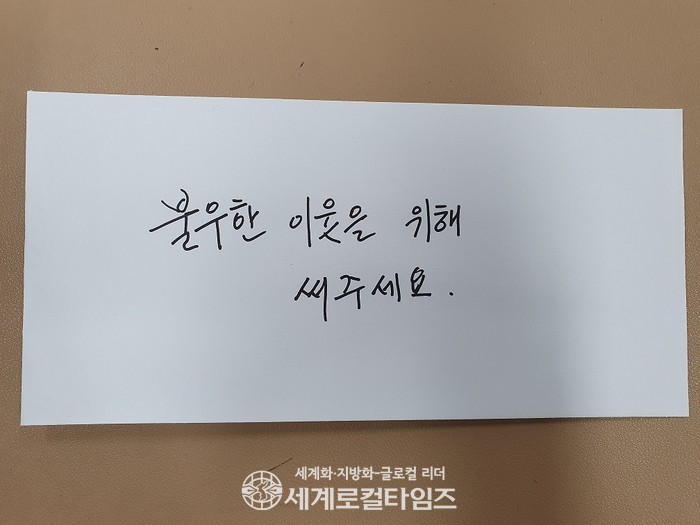 취약계층을 위한 사업을 진행하던 중 사업비가 부족해 어려움을 겪고 있다는 걸 안 이름 모를 주민이 마음을 전한 것으로 전해지고 있다.