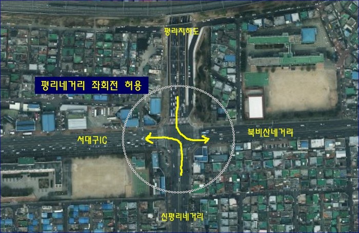 이곳 좌회전 허용은 평리동과 비산동을 비롯한 구민들의 숙원사업으로 그동안 돌아가는 불편을 해소하게 됐다.