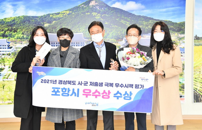 [세계로컬타임즈 이장학 기자] 포항시는 20일 경북도청에서 개최된 ‘2021년 시·군 저출생 극복 우수시책 평가’ 시상식에서 ‘우수상’을 수상했다.