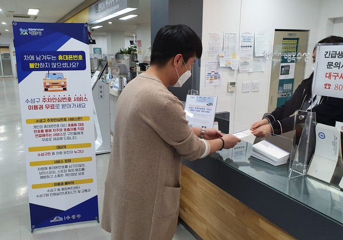 [세계로컬타임즈 최영주 기자] 대구 수성구는 주차 등과 관련해 차량에 부착한 개인 휴대폰 번호가 범죄에 악용되는 것을 예방하기 위해 ‘주차안심번호 서비스’를 대구·경북 지자체 중 최초로 도입해 5월부터 구민들에게 무상으로 제공한다고 28일 밝혔다.