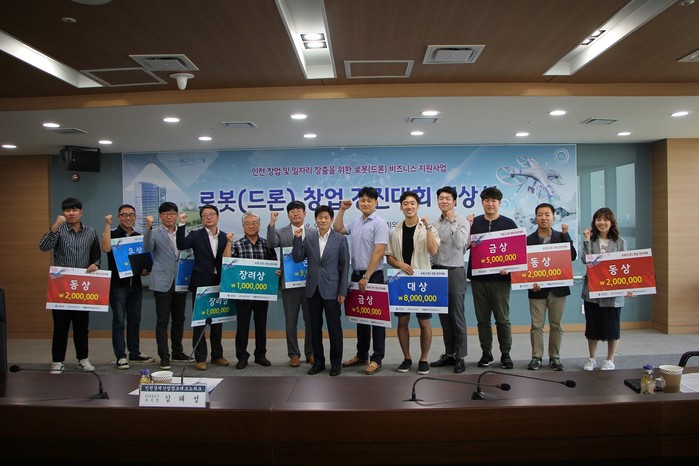 | ▲ 로봇 창업경진대회 입상자 단체사진(사진=인천시 제공) |