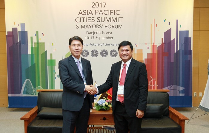 이재관 대전시 행정부시장과 ‘2017 아시아태평양도시정상회의’ 참석차 방문한 응우엔 쥐 흥옌성 인민위원회 부주석이 12일 시청 다목적실에서 경제·사회·문화 등 각 분야에서 교류 및 협력관계 증진을 위한 우호협력교류 의향서를 체결했다.