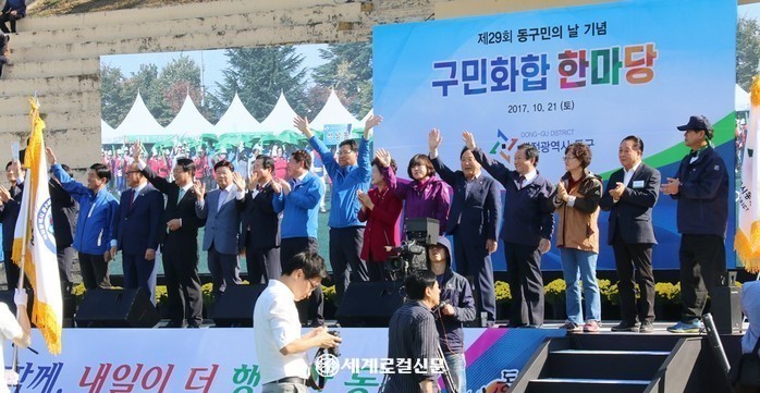 권선택 대전시장을 비롯해 이장우 국회의원(대전동구) 강래구(민주·지역위원장), 황인호·윤기식·안필응 시의원 등은 동구민의 날 화합 한마당 축제를 참석해 환영하고 개막을 축하했다.