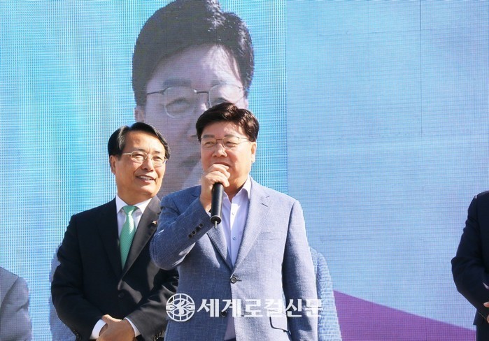 권선택 시장은 축사에서 "오늘 동구민 화합 한마당 행사를 축하 드린다. 지금 껏 동구하면 떠오르는 것이 있다. 원도심, 침체지역 단어들이 있다. 이젠 지난 이야기이다. 지역사업이 많이 진행돼 주거환경이 달라졌다"면서 "앞으로 동구발전에 몆가지 님은사멉(역세권 개발, 시립의료원, 철도박물관, 주거환경개선사업)을대전시민, 동구민과 역량을 결집해 마무리 짓겠다"고 전했다.