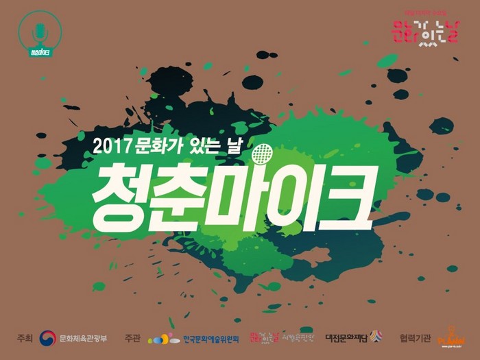 문화가 있는 날 ‘청춘마이크’ 사업은 문화체육관광부가 주최하고 문화가 있는 날 사업추진단과 대전문화재단이 주관하는 사업으로 각 지역에서 엄선된 청년예술가들을 대상으로 매달 마지막 주 ‘문화가 있는 날’ 무대에 설 수 있는 기회를 마련해 주는 사업이다.