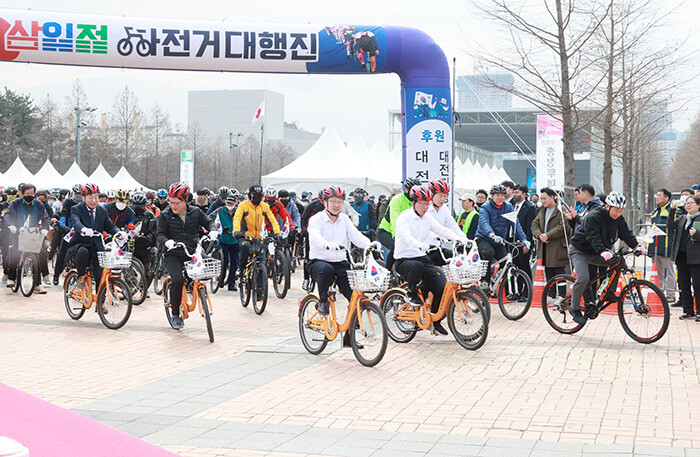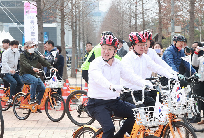 이장우 시장은 “3.1절을 맞아 오랜만에 마스크를 벗고 시민들과 만나게 돼 기쁘다”면서, “자전거는 친환경 교통수단 분담률 높이는 교통수단”이라며, “자전거 기반시설 확충 및 자전거 이용문화 조성을 위해 투자를 확대하겠다”고 밝혔다.