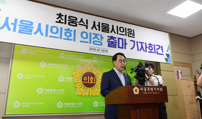| ▲ 최웅식 서울시의원이 2일 서울시의회 의장 출마를 공식적으로 발표하고 있다. |