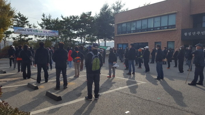 | ▲연천군 왕징면 체육회는 지난 10월 31일 왕징면 행정복지센터 앞마당에서 ‘2020년 왕징 평화누리 숲길 걷기대회’를 개최했다. (사진=연천군 제공) |