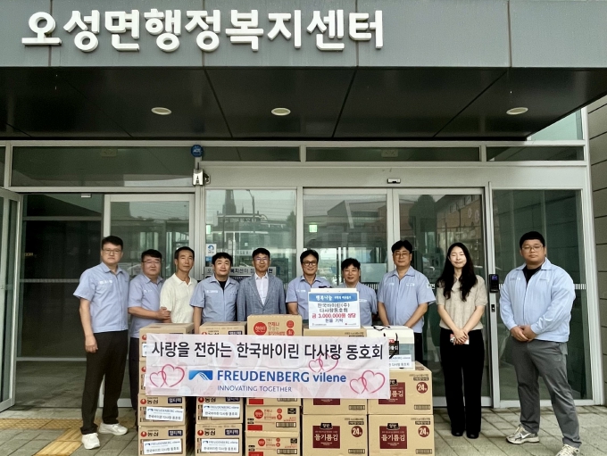 강성식 오성면장은 “추석을 앞두고 뜻깊은 나눔을 실천하신 한국바이린(주) 임직원분들께 깊이 감사드린다”며, “기부하신 물품은 꼭 필요한 가정에 잘 전달해 따뜻한 명절을 보내시도록 하겠다”라고 전했다.