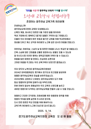광주하남교육지원청 오성애 교육장, 가정의 달 맞아 5월 청렴 서한문 배포