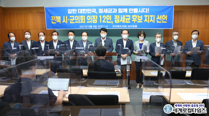 [세계로컬타임즈 조주연 기자] 전북지역 시·군 의회 의장 12인이 정세균 더불어민주당 대선 예비후보 지지를 선언했다.