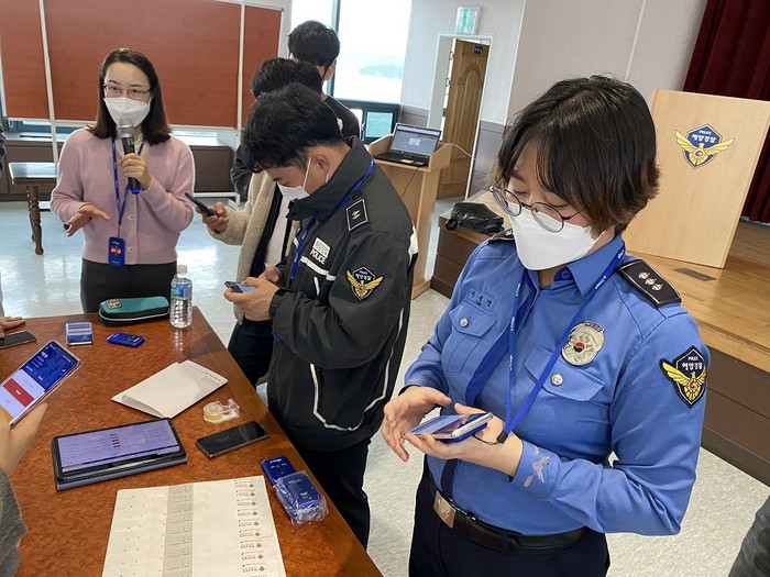 이번 교육은 경비함정, 파출소 등 최 일선 현장부서 경찰관을 대상으로 전자 태그 형식 단말기 사용방법 및 시스템 운영 방법 전반에 대한 교육과 함께 재난 상황을 가정한 실습 등으로 진행됐다.