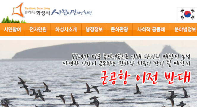 | ▲ 경기도 화성시가 수원시의 전투비행장 이전과 관련해 제동을 걸었다. 사진은 화성시청 홈페이지에 게재된 군공항 이전 반대 배너. <사진=화성시청 홈페이지 캡쳐 화면> |