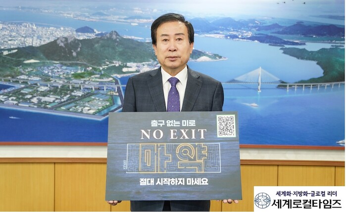 [세계로컬타임즈 김명진 기자] 박홍률 목포시장이 1일 마약범죄 예방 ‘노 엑시트(NO EXIT)' 릴레이 캠페인에 참여해 마약류로부터 ’시민이 안심하는 지역사회 만들기‘를 다짐했다.