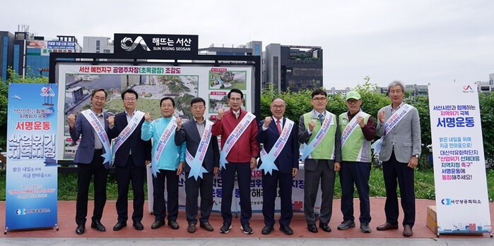 시에 따르면, 서산상공회의소 주관으로 이날 오전 10시부터 오후 3시까지 진행된 서명운동에는 총 8백여 명의 시민이 참여했다.