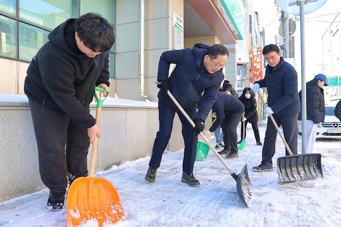 군은 25일 명현관 군수와 1천여명의 전 공직자가 참여한 가운데 설연휴 폭설이 내린 읍면 시가지를 중심으로 제설작업을 실시했다. 제설작업은 이날 새벽 영하 13도까지 내려가는 최강 한파 속에 내린 눈이 빙판길로 다져질 것을 우려해 응달진 인도를 중심으로 통행량이 많은 골목구간까지 구석구석 실시됐다.