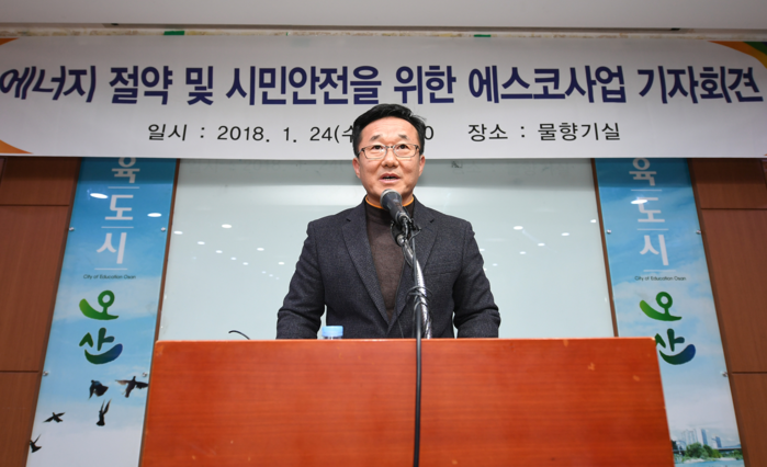 | ▲ 오산시 미래도시국 김영후 국장이 '에너지절약 및 시민안전을 위한 에스코사업 기자회견'에서 발언하고 있다. |