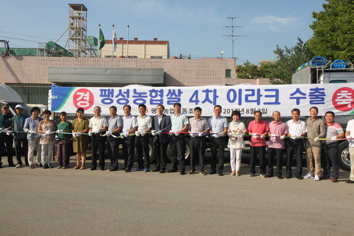 지난 2014년 11월 팽성농협쌀을 이라크 비스마야 신도시 건설 현장에 첫 수출을 시작으로 2015년 3월과 9월 총 3차례에 걸쳐 쌀 40톤(2000포/20kg)의 수출실적을 달성했고 이달에 4차례 쌀 16톤(800포/20kg)을 수출한다.