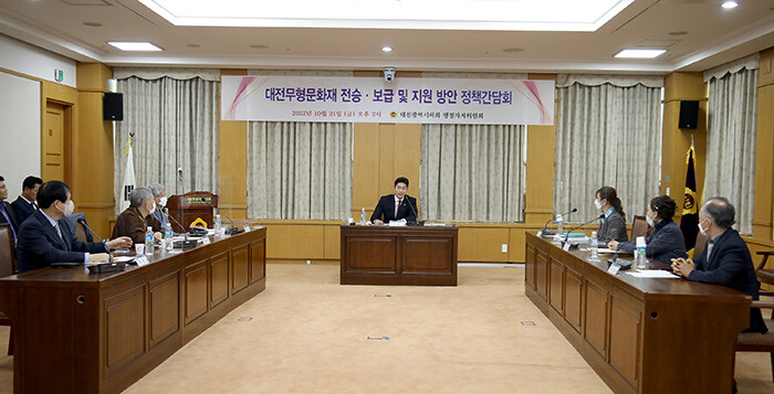 이날 좌장을 맡은 이용기 의원은 “1호부터 25호까지 대전시지정문화재 보유자들은 전통문화의 명맥을 이어가고 전승하는 일이 필요하다는 신념으로 해당 분야를 지켜온 분들”이라며 “시를 대표하는 무형문화재의 전승·보급을 확장할 수 있는 방안을 고민해야 한다”고 밝혔다.