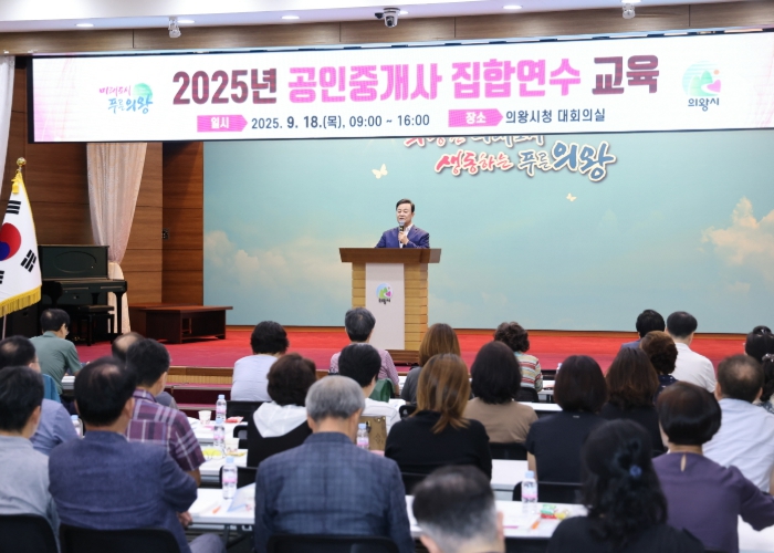 [세계로컬타임즈] 의왕시는 9월 18일 시청 대회의실에서 관내 공인중개사 120명이 참석한 가운데 ‘2025년 공인중개사 집합 연수 교육’을 개최했다.