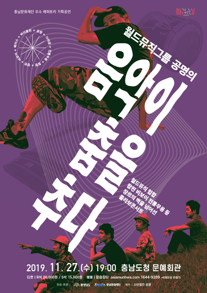 오는 27일 오후 충남도청 문예회관에서 열리는 기획공연 ‘음악이 춤을 추다’는 한국 전통음악을 바탕으로 음악의 가능성을 확장하고 있는 월드 뮤직 그룹 ‘공명’과 월드 챔피언 스트릿 댄스팀 ‘고릴라 크루’의 컬래버레이션 공연이다.