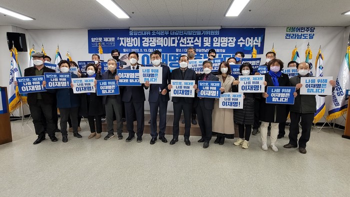 [세계로컬타임즈 김명진 기자]더불어민주당 선대위 조직본부 더강한지방만들기위원회는 지난 13일 오후 전남도당 대회의실에서 ‘지방이 경쟁력이다’ 선포식 및 임명장 수여식을 가졌다.
