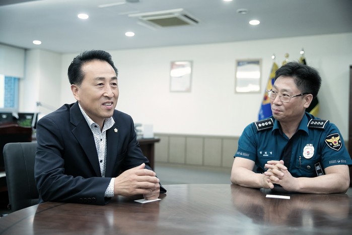 | ▲ 9일 화성시의회 김홍성 의장이 화성서부경찰서를 방문한 모습. |