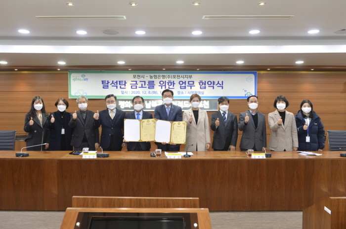 | ▲포천시는 8일 시금고로 지정돼있는 농협은행 포천시지부와 탈석탄을 위한 업무협약식을 개최했다. (사진=포천시 제공) |