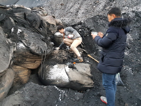 이에 대해 본지가 지난달 21일 연천군청 환경보호과 오염총량팀 Y주무관 등 직원들과 A광업소가 생산하는 무연탄 전량 판매계약자와 동행해 산 63번지 등에 마대자루에 반입된 석탄분진을 채취했다. 이를 연천군이환경보건연구원에 시험을 의뢰했다.