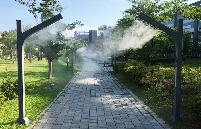 미세 물안개 입자를 지속적으로 분사, 기화열을 흡수함으로서 주변 온도를 3~5도 가량 낮추고 미세먼지 저감 기능도 갖춘 친환경 냉방시스템으로 각광받고 있다.