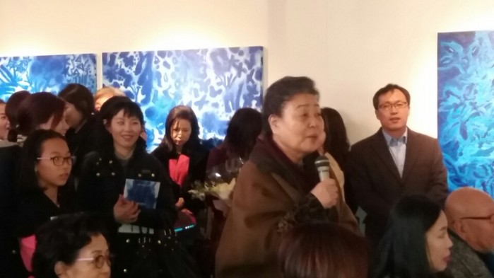 [세계로컬신문 이종학 조사위원] 탤런트 강부자씨가 21일 오후 서울예술재단에서 열린 세계일보 창간 28주년 기념 '세계미술전' 개막식에 참석해 김선형 작가의 작품에 빠진 사연을 소개하고 있다. 김선형 작가의 'GARDENBLUE' 전시회는 다음달 9일까지 열린다.