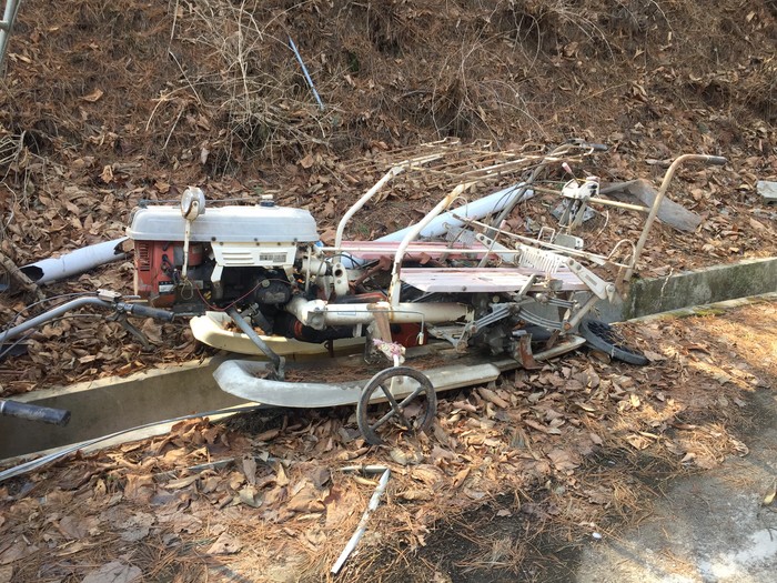 | ▲가평군농업기술센터가 폐농기계를 수거해 처리한다. 사진은 농수로에 방치된 폐농기계 모습.<사진제공=가평군청> |
