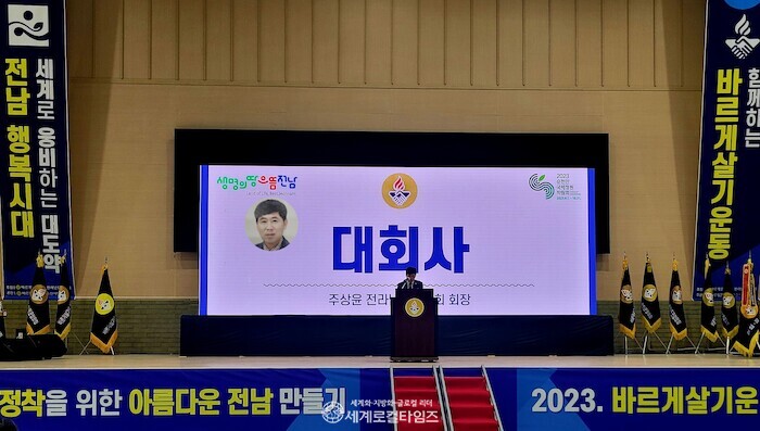 [세계로컬타임즈 글ㆍ사진 이남규 기자]2023 바르게살기운동 전라남도 회원 대회가 전남 순천에서 열렸다.